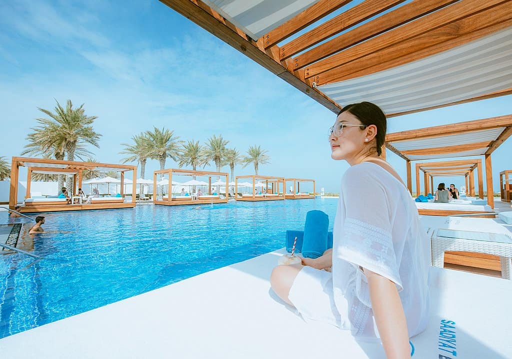 Mitten in unberührter Natur und umgeben von Dünen und Strand haben Gäste des Saadiyat Beach Club die Gelegenheit, den feinen Sandstrand auszukosten und weitere exklusive Vorzüge zu genießen. So stehen direkt am Strand Sonnenliegen, während am schönen Pool-Bereich Cabanas den Tag im Beach Club versüßen. Den Strandtag machen drei Restaurants, eine Bäckerei, eine Bibliothek-Lounge, ein Fitness-Center und ein Friseursalon perfekt. Ein Tagespass ist ab ca. 55 € pro Person erhältlich.